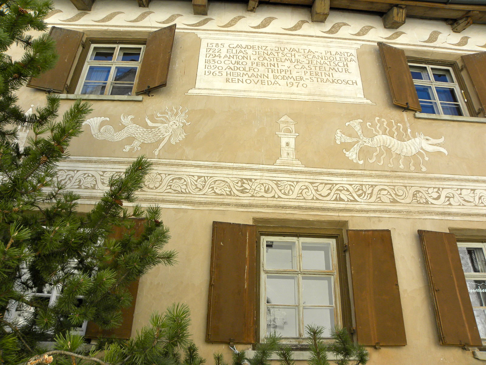 Stare, solidne patrycjuszowskie domy engadyńskie były od wieków ozdabiane tymi samymi motywami: rybami, syrenami i wężami/smokami. W Samedanie, w Bevers, w Zernez spotykamy je na każdym kroku.