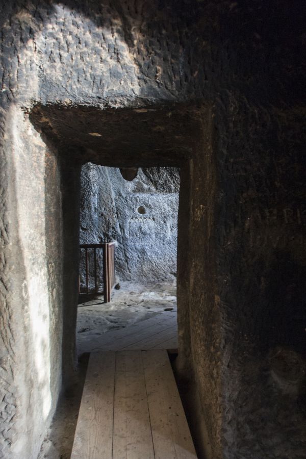Pierwsze piętro. Barierka chroni przed wpadnięciem w otwór prowadzący do głównej sali.