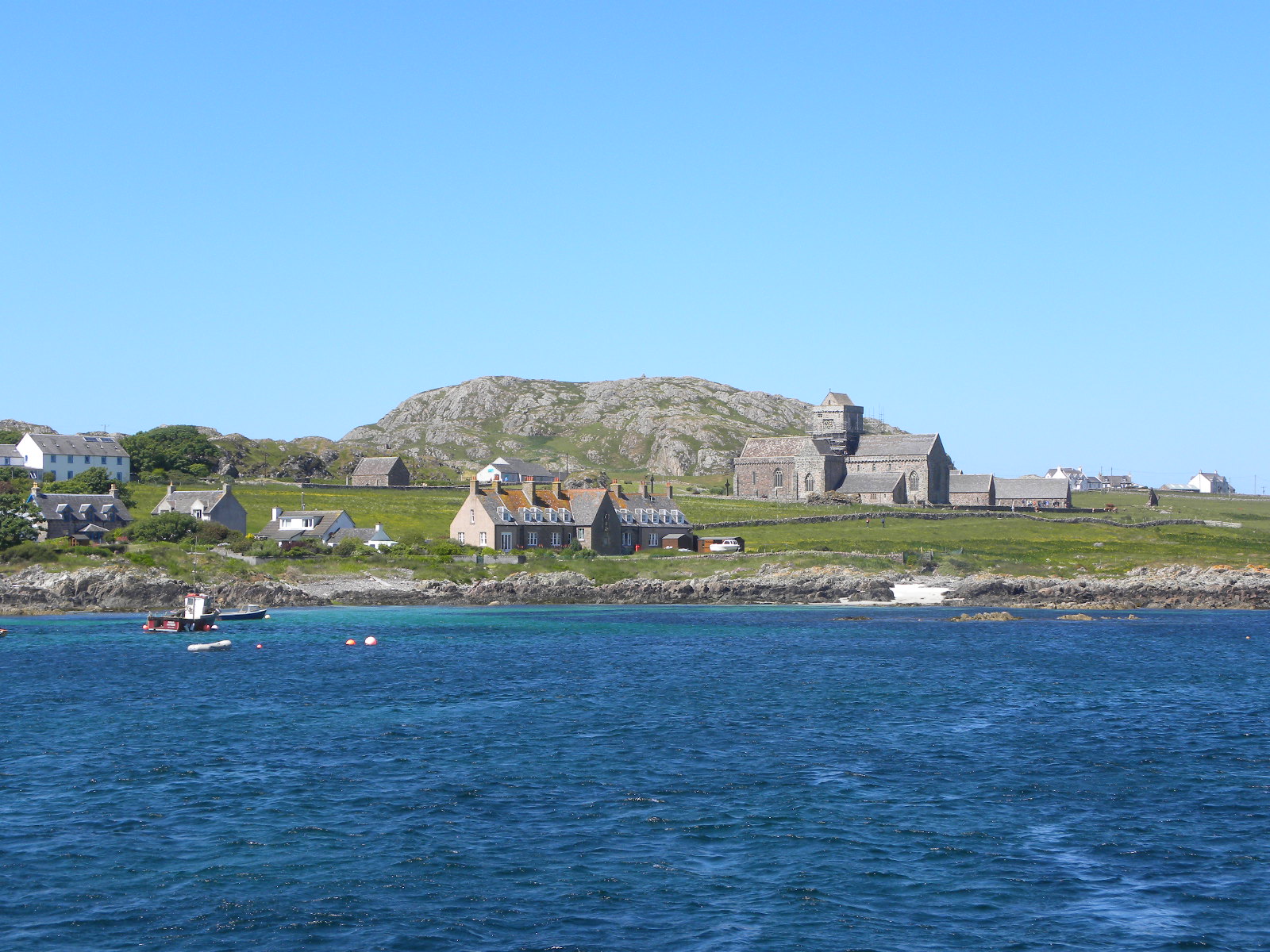 Iona była zasiedlona już w okresie kamienia i brązu, archeolodzy wydobywają artefakty z tego okresu z wykopalisk w pobliżu klasztoru. Znajduje się tam kopiec grobowy Blàr Buidhe. Niedaleko, na zachodniej stronie wyspy, jest usypany wał z okresu żelaza. Nie obronny, ale oddzielający sacrum od profanum jak w wielu innych miejscach w Europie, od Ślęży do Irlandii. Wiadomo, że wyspa była świętą przed przybyciem Kolumbana. Jej oryginalna nazwa to Innis-nam Druidbneach, czyli wyspa Druidów. Kroniki staroceltyckie opowiadają o zakonie kapłanek, które miały jej strzec.